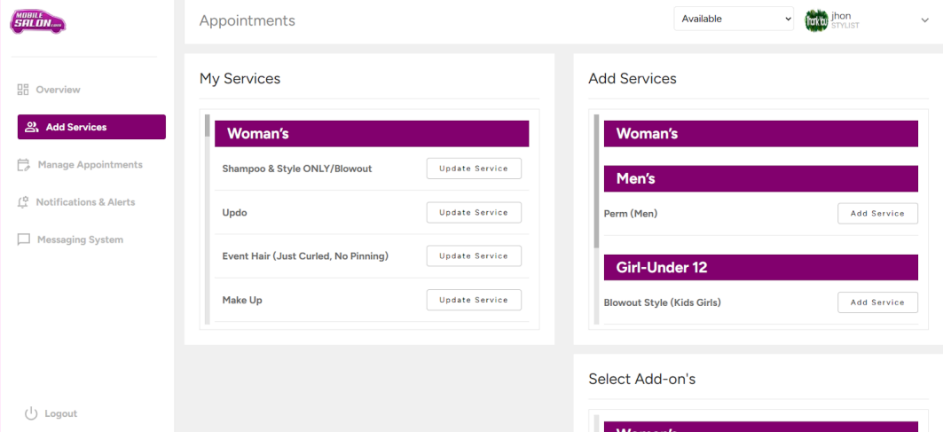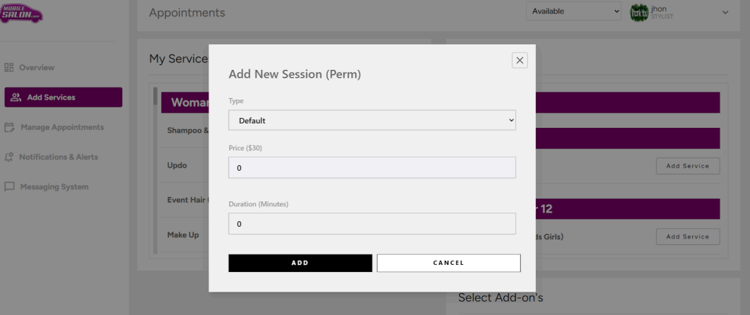6. Providers can add multiple services and add-ons. They have the option to either use platform-defined pricing for a specific service or set their own service pricing.
