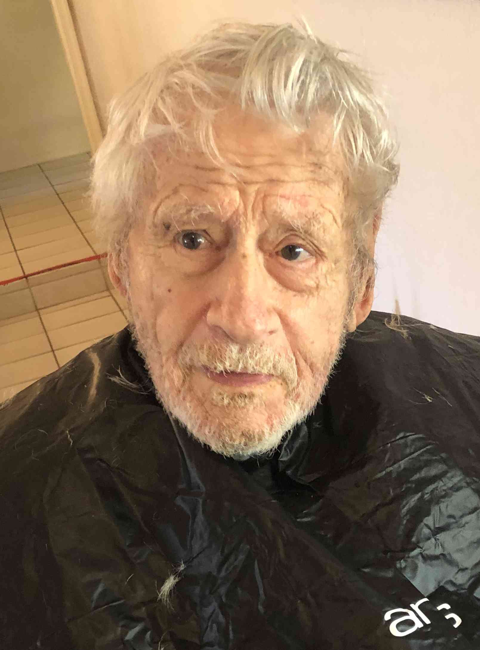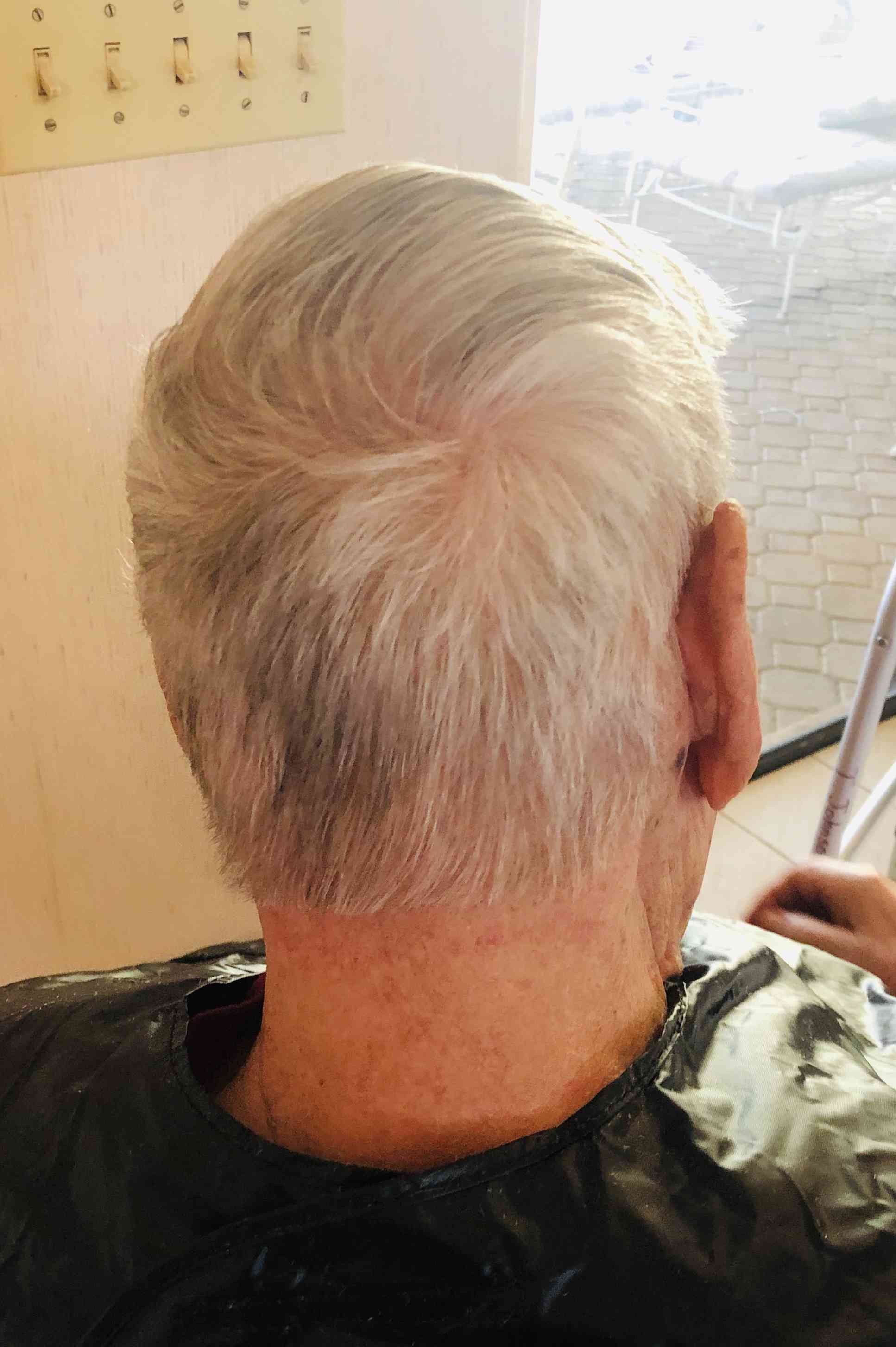 Our stylist came to this elderly man to do a haircut in North Palm Beach, Florida.