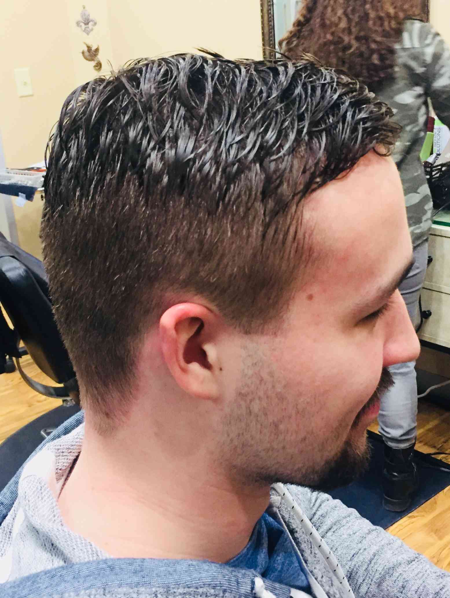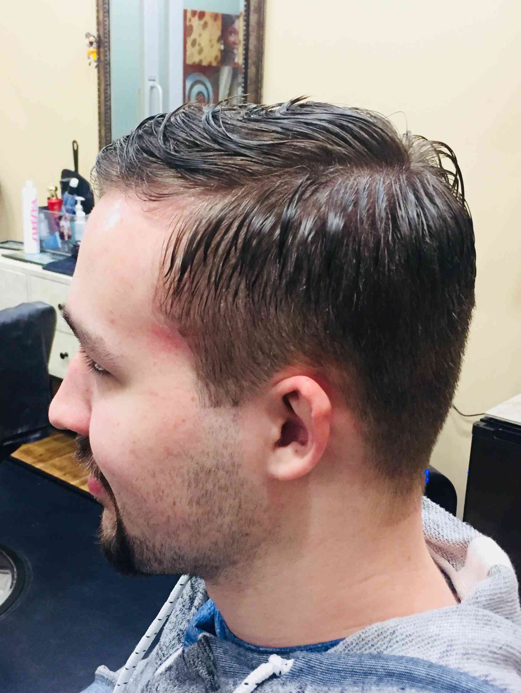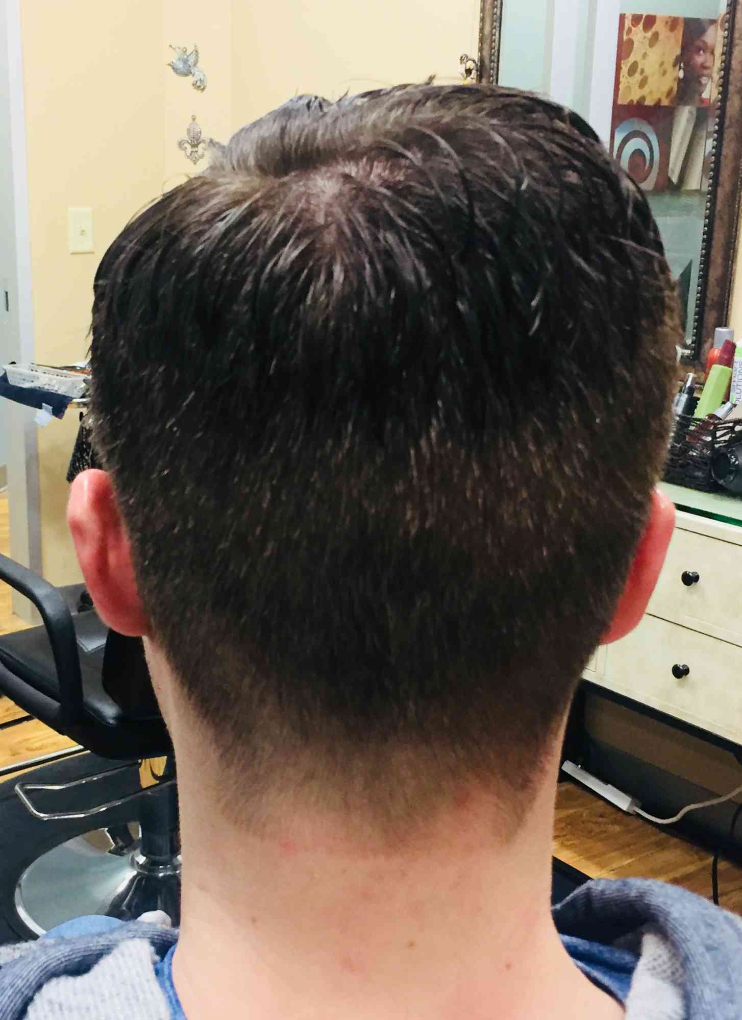 Returning long time happy client, Benjamin Mason, Savage, MN. We did a shorter crew cut up the sides and back. Then, took about an inch off the top with a shears, and blended the top with the sides using clipper over comb technique. Styled with Redken Gel.