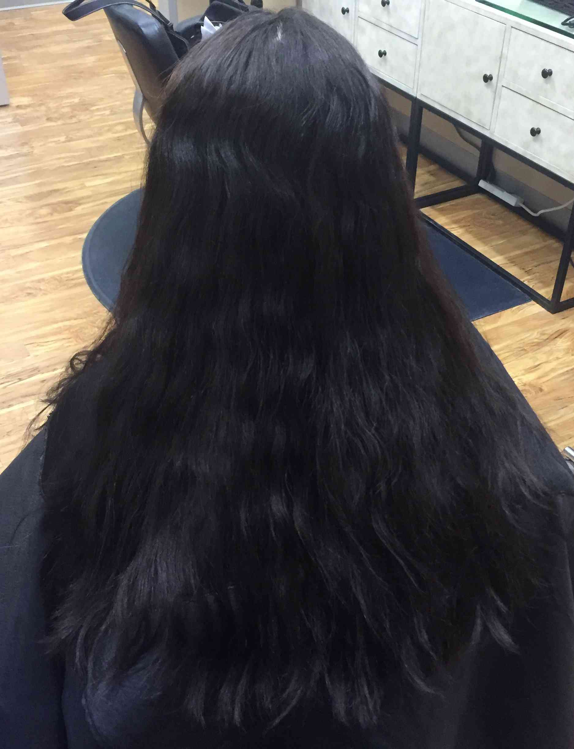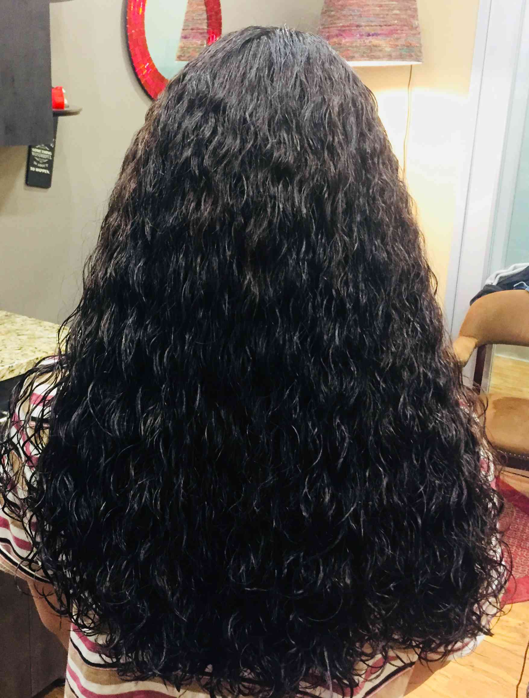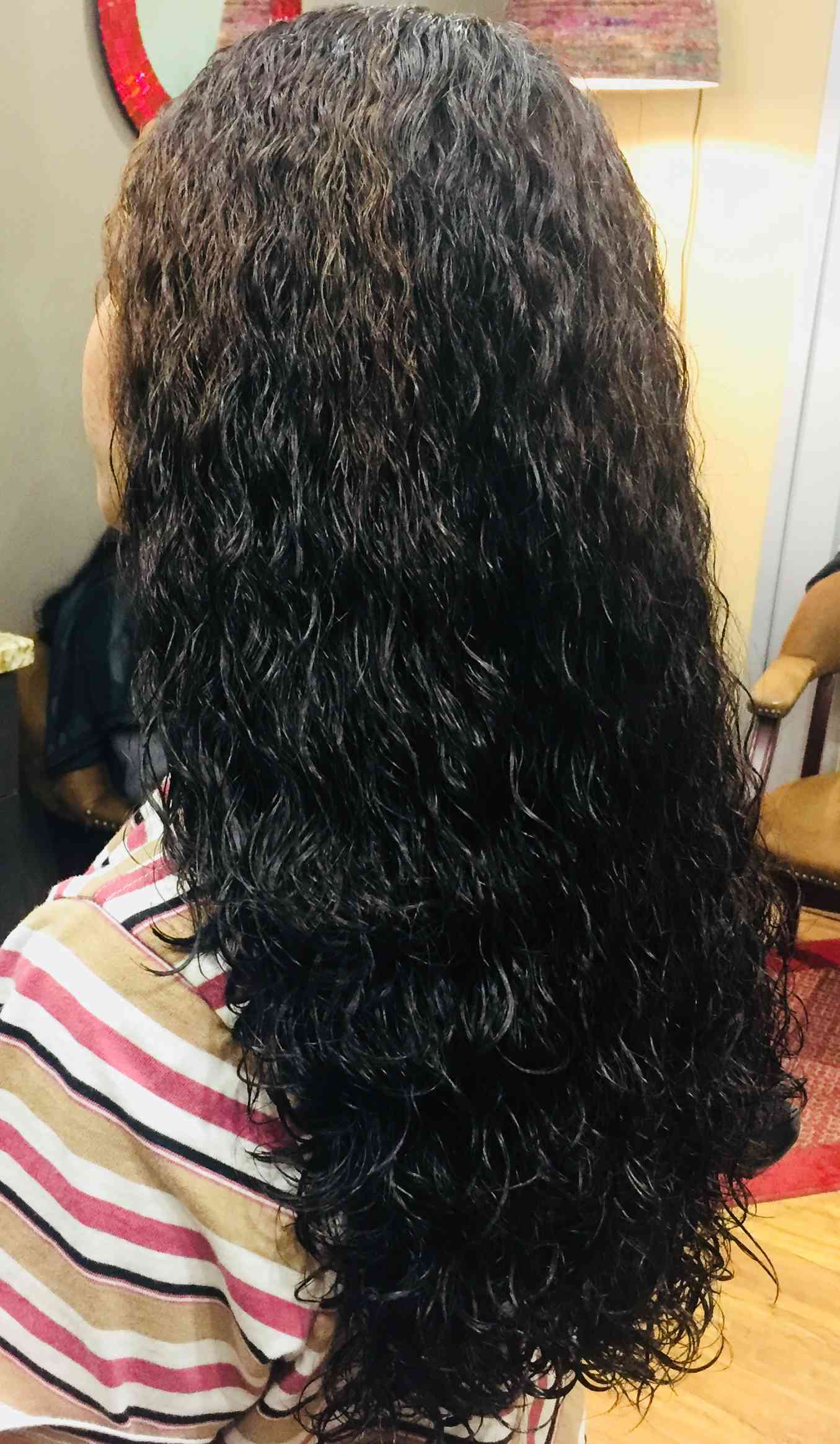 Was fun giving Trinity Lor or Maple Grove a spiral perm as she had lots of hair to work with! Used loop rods, or "tensive" rods, giving her hair more spring in her curls and texture. Squeezed out most of the moisture with a towel to refrain from getting frizz, and let her hair air-dry style.