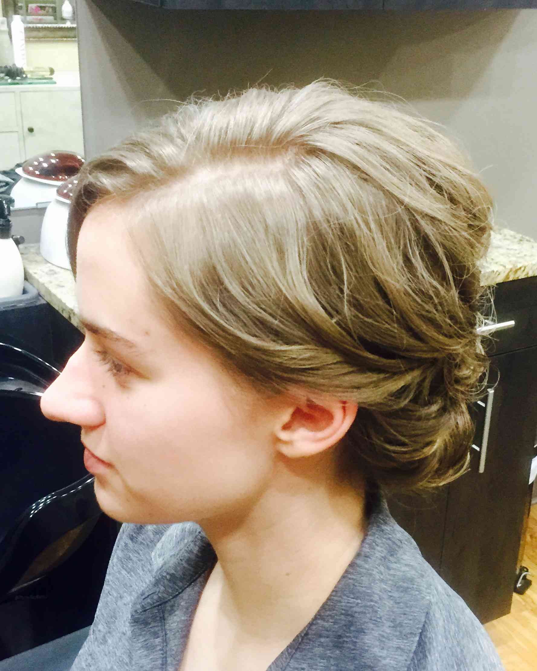 Side swept and curled updo for prom, Sarah Somar, Burnsville, MN