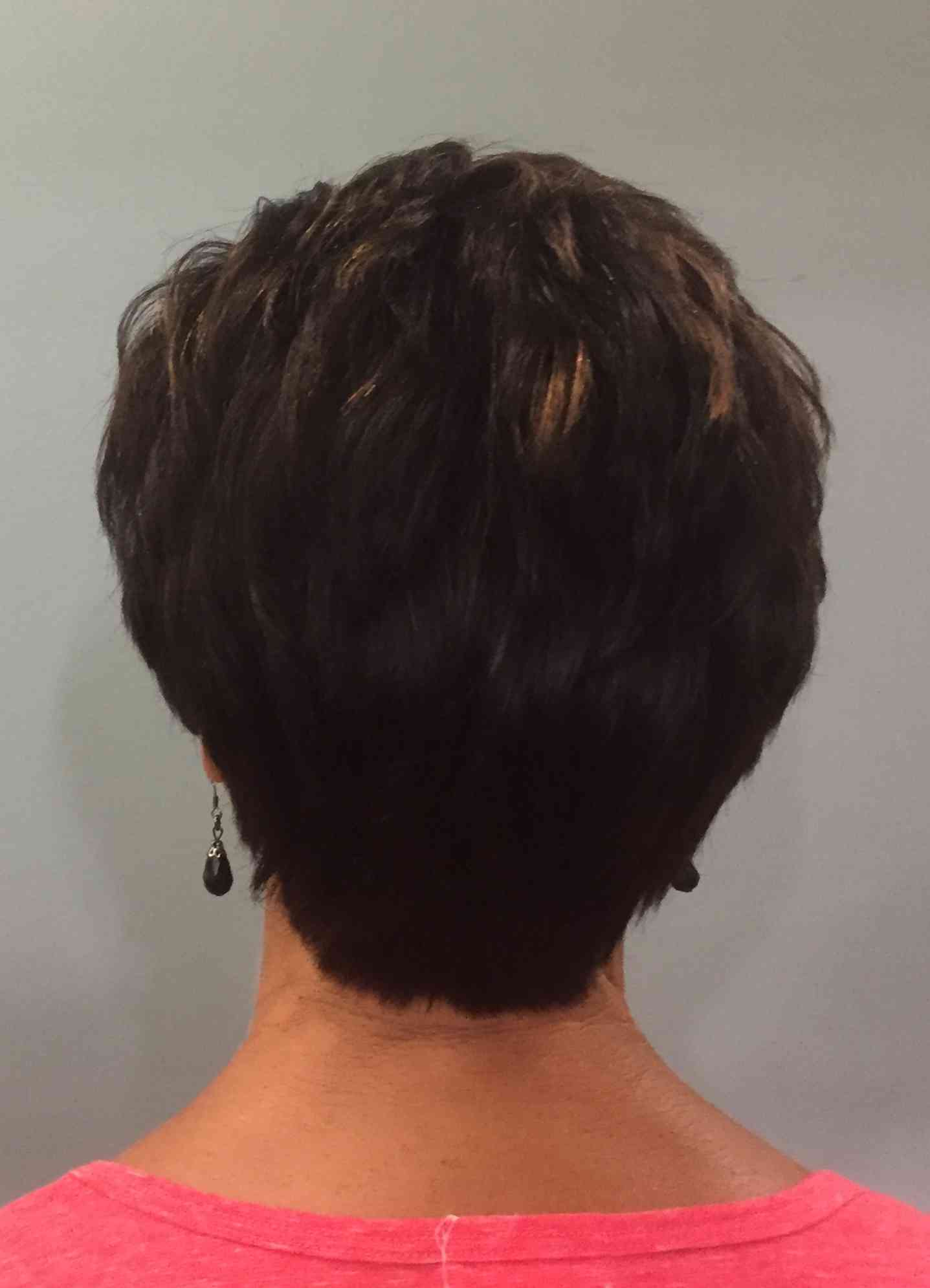 Cindy Claeys, Porter, MN. Honored to do this special woman's hair! We did a rich chocolate brown color all over, and added a few caramel highlights through the top. Also, freshened up her ends with a trim. Styled with Lanza Thickening Spray in her root area, and applied Biosilk SIlk Therapy to her ends. Blowdried with a small roundbrush, also using fingertips at the scalp to lift the hair. Finished with a little Redken Rough Paste on her ends to separate the layers, added a touch of Chi Enviro Hairspray, and a little Chi Shine Infusion.