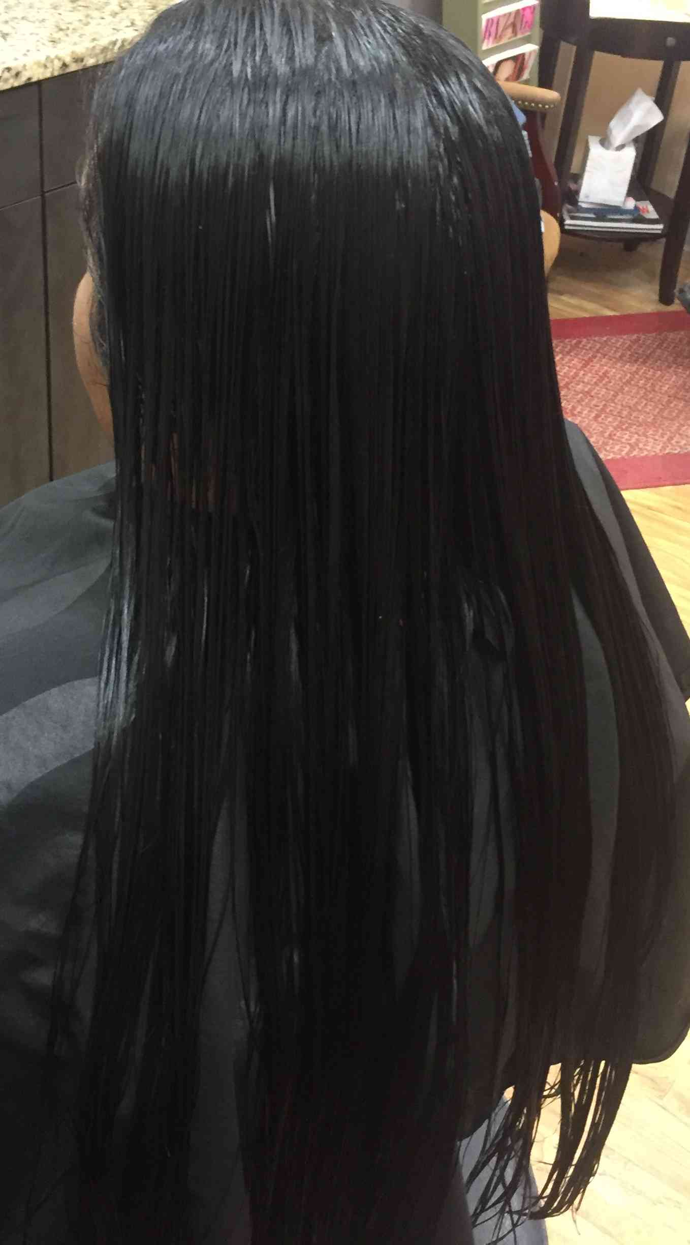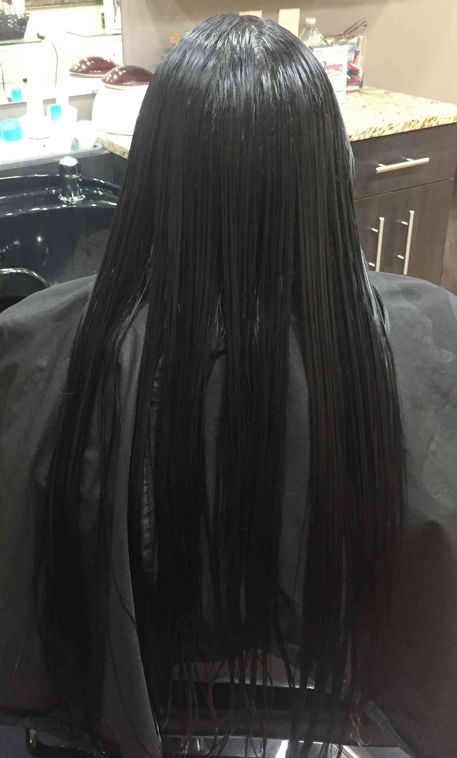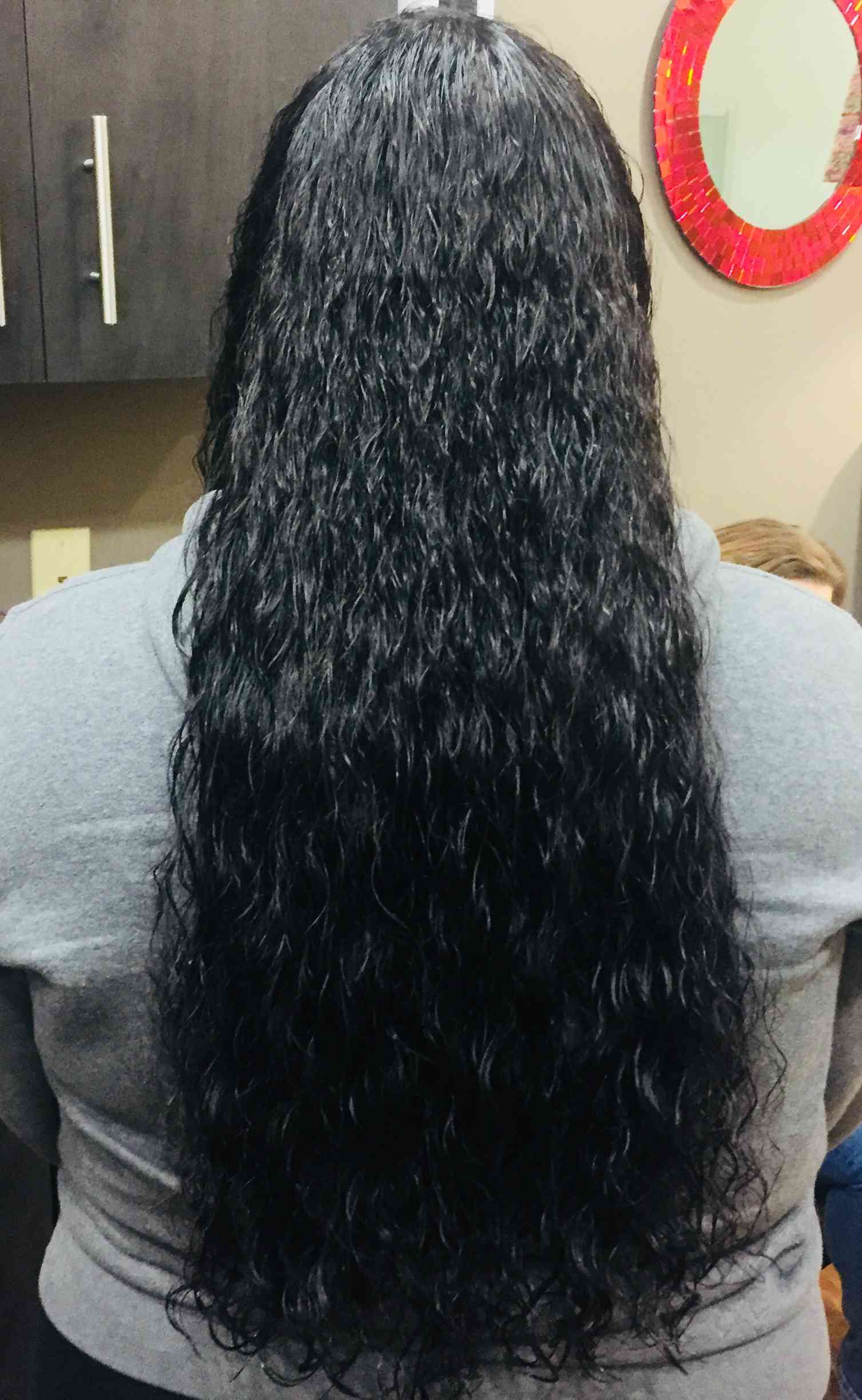 Before and after pics of long-haired spiral perm on Daniela Orozco of Brooklyn Center. We used loop rods, or "tensive" rods to give her a little more texture and curl in her hair. We also took about an inch off her length to freshen up her ends after the perm. After squeezing most of the moisture out of her hair with a towel , we let her hair air-dry style.