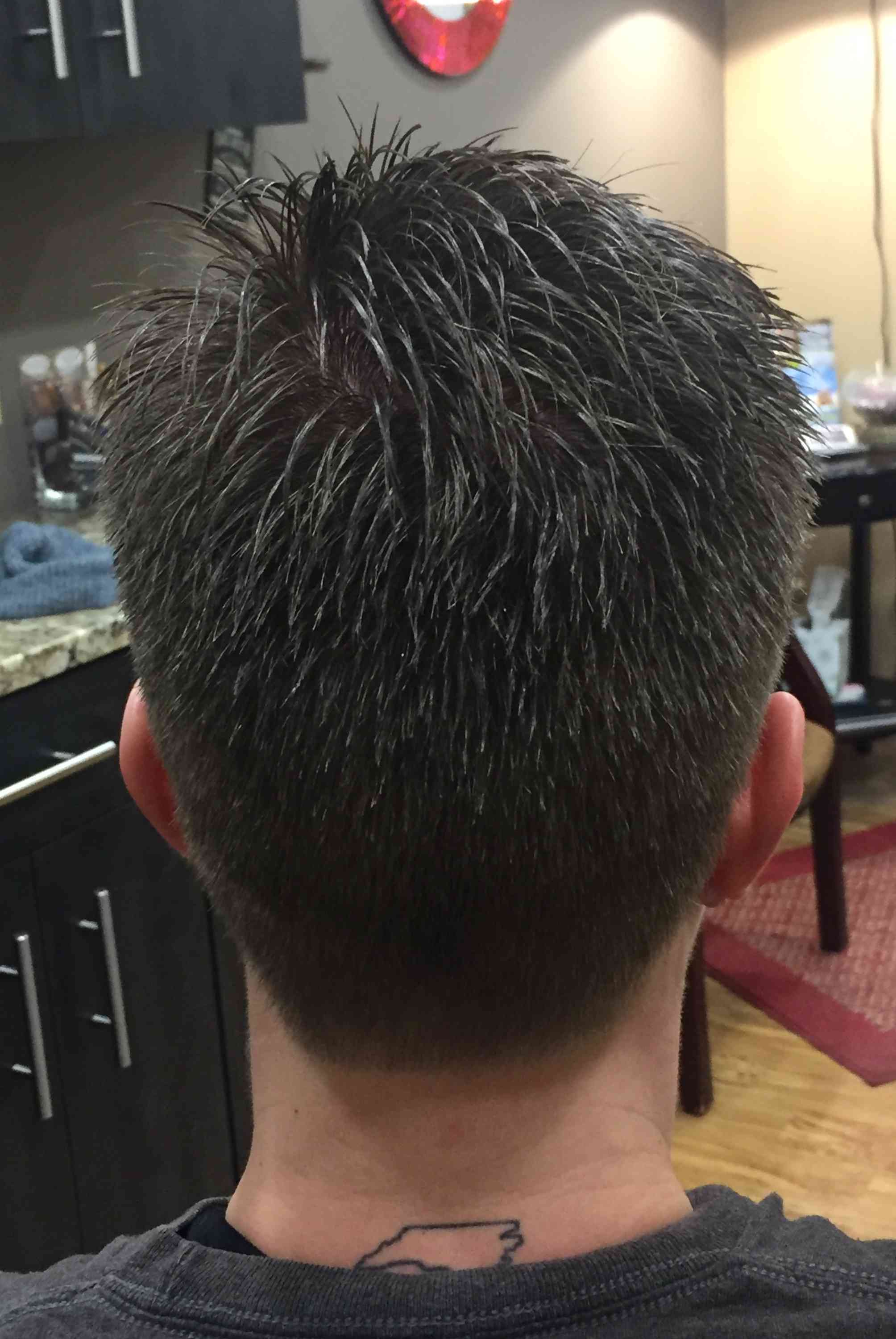 Happy client, Kayla Penrod, Apple Valley, MN. Gave her a clean and faded haircut, using a clippers with attachments around the ears and back of the head. Then, did the clipper over comb technique to blend top with the sides. And, finished trimming the top with shears and comb. Styled with Redken medium hold gel.